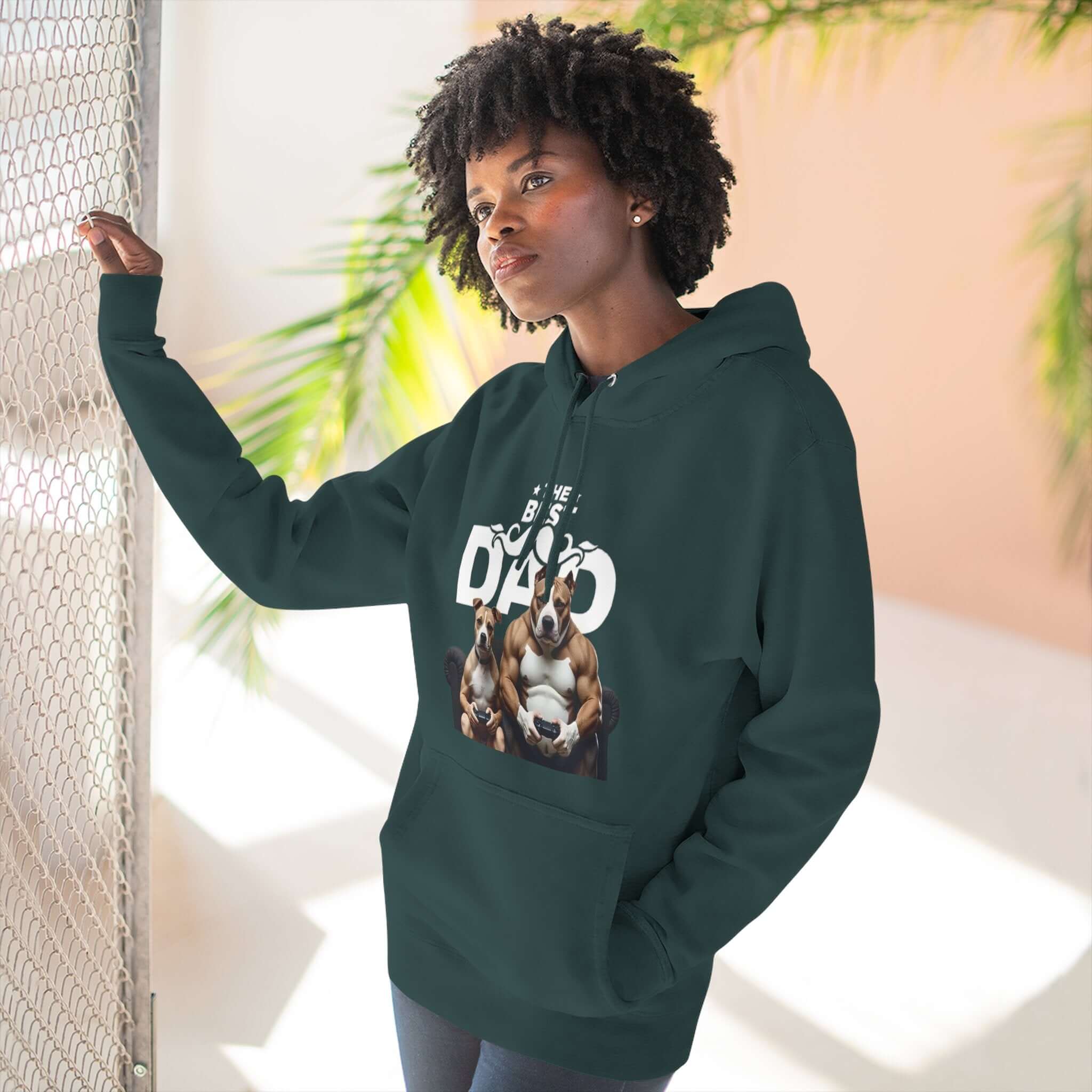 The Best Dad – Bulldog Father & Puppy Graphic Unisex Hoodie, medium-weight hoodie brings quiet confidence and cozy practicality to everyday wear. Built from a soft, ring-spun cotton blend with a brushed fleece interior, it feels lived-in from the first wear and holds its shape through repeated use. The adjustable hood with metal-grommet drawcords and a roomy kangaroo pocket add functional warmth. Subtle embroidery placement options on the chest keep the look refined, while durable double-needle stitching and twill necktape ensure long-lasting comfort. The bold graphic on the front gives the piece personality—casual, familiar, and ready for relaxed weekends at home or slow walks around the neighborhood.Product features- Soft 3-end fleece with a luxurious hand-feel- Medium-heavy fabric weight (8.25 oz/yd²) for warmth and structure- Adjustable hood with metal-grommet drawstrings and spacious kangaroo pocket- Durable construction: twill necktape, double-needle topstitching, tear-away label- Blend of ring-spun cotton and recycled polyester for softness and reduced shrinkage (under 5%)Care instructions- Machine wash: cold (max 30C or 90F)- Do not bleach- Tumble dry: low heat- Iron, steam or dry: low heat- Do not dryclean S M L XL 2XL 3XL Width, in 20.00 22.00 24.00 26.00 28.00 30.00 Length, in 27.00 28.00 29.00 30.00 31.00 32.00 Sleeve length, in 24.00 24.50 25.00 25.50 26.00 26.50 Size tolerance, in 1.00 1.00 1.00 1.00 1.00 1.00